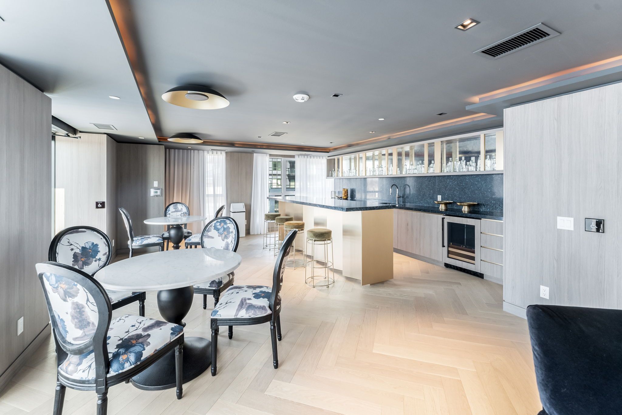 Luxury amenities include 24-hour concierge, a fitness studio, yoga/Pilates areas, a lounge with a fireplace, a games room, a private dining room with a chef’s kitchen, a pet-washing station, and a BBQ terrace. Plus, enjoy the convenience of underground parking and a locker.